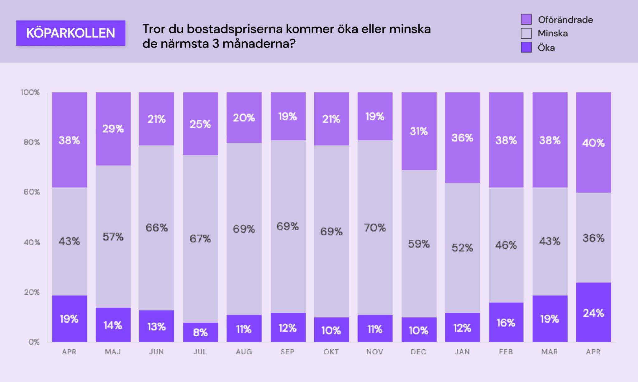 Bostadsportalen Boneo presenterade Mäklarkollen och Köparkollen som deras trendspaning om bostadsmarknaden och som riktar sig till både mäklare och besökare på Boneo. I april visade undersökningen att nästan 25 procent av bostadsköparna tror på en ökning av bostadspriserna, och lika många planerar att köpa en ny bostad inom den närmsta månaden.