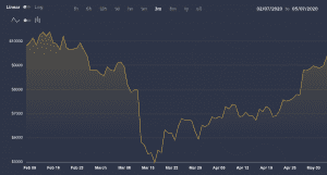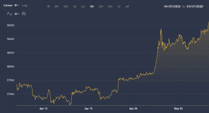 Bitcoin som under mitten av februari slog igenom och stabiliserade sig över den mentalt magiska gränsen 10,000 USD under en period. Vid utbrottet av Covid-19 dök kryptovalutan totalt och värdet halverades på bara några dagar.