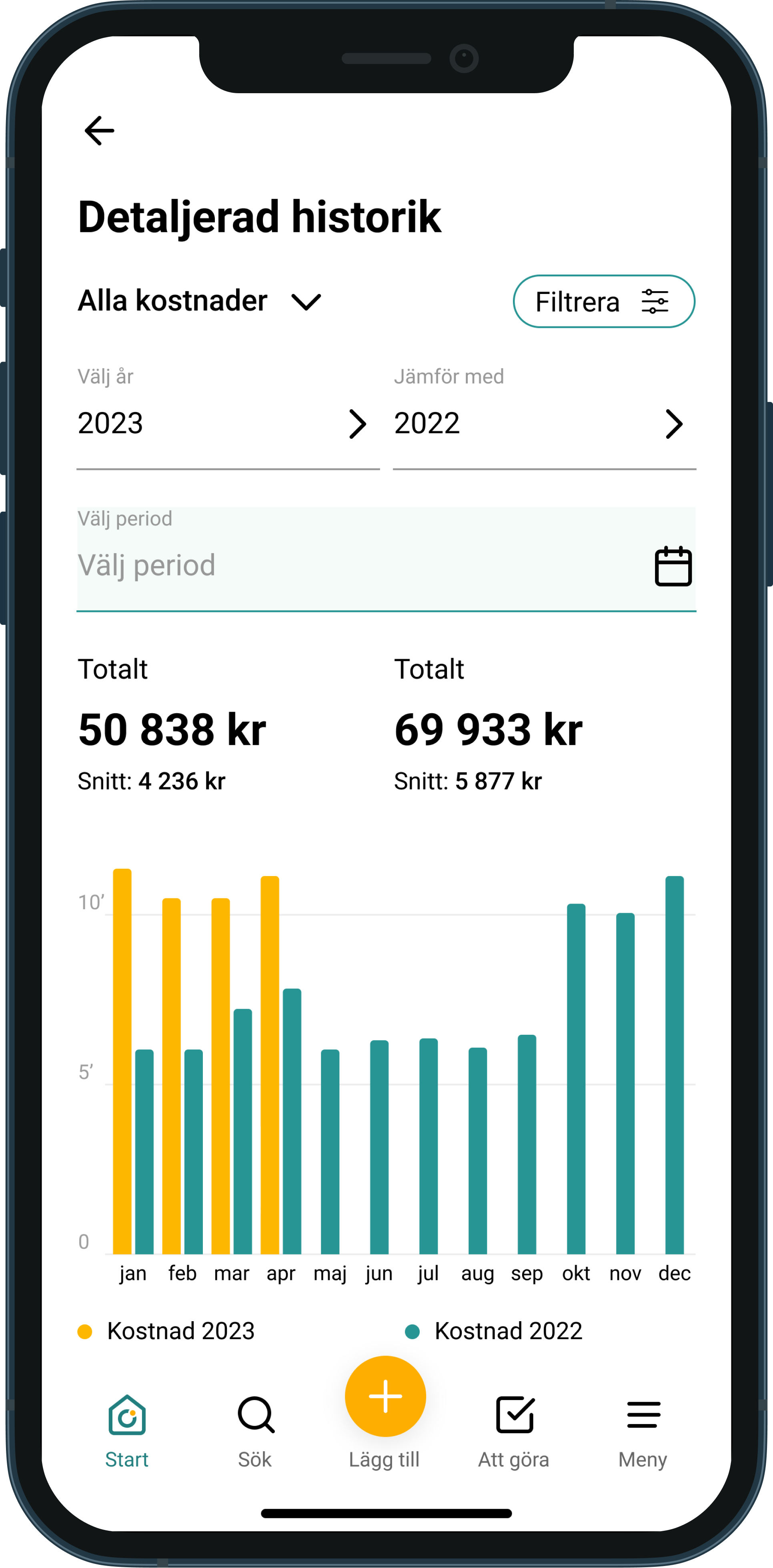 Hur mycket betalar du varje månad för din bostad? Har du tappat bort ett kvitto som behövs inför en deklaration, garanti reklamation? Funktionen för Boendekostnader är till för dig! Genom att enkelt hämta och automatiskt få dem sorterade med bara några få klick, kan du jämföra kostnaderna för ditt boende från tidigare år eller med din budget och se hur de förändras över tid. Den tydliga boendekostnadsöversikten hjälper dig att prioritera rätt kostnader och hålla nere dem över tid om någon kostnad plötsligt skulle skena iväg.