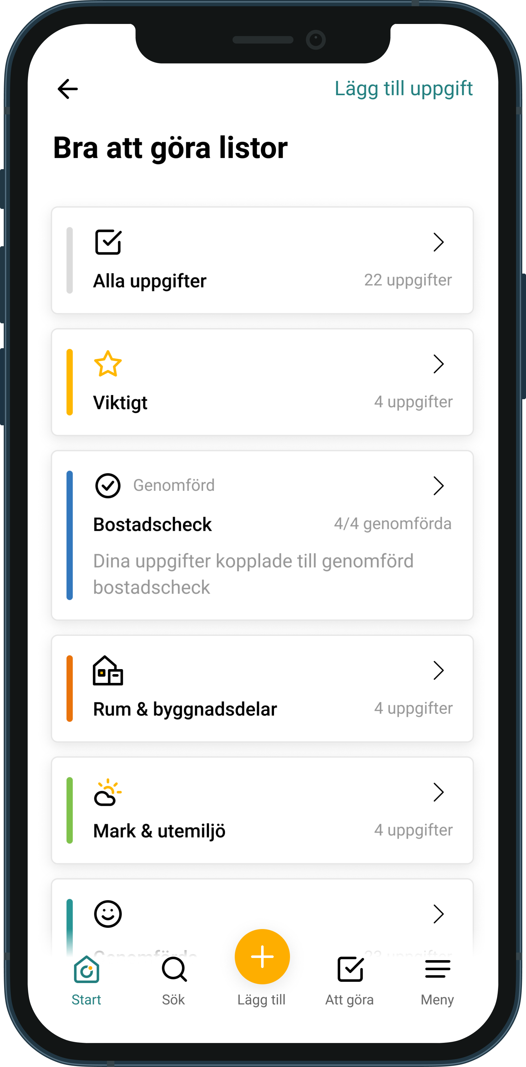 Underhåll utgör en betydande del av att vara en bostadsägare, både i termer av tid och pengar. Det är inte alltid enkelt att hålla reda på och hantera alla nödvändiga åtgärder. Därför erbjuds möjligheten att skapa en personlig “Att göra lista” som kan anpassas med egna uppgifter, samt att välja från en lista med rekommenderade åtgärder. För de valda uppgifterna tillhandahålls även detaljerade beskrivningar om hur du kan genomföra dem, och du har möjlighet att söka bland olika områden som tak, fasad, grund, hängrännor och vattenlås i appens bibliotek. Genom att uppskatta kostnaden för dessa åtgärder kan du skapa en uppskattad budget. Dessutom kan du enkelt följa upp och matcha dina utgifter genom att koppla kvitton till utförda åtgärder.