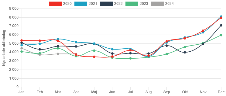 Trots den dystra trenden med ökande konkurser finns det tecken på hopp. Antalet nyregistrerade aktiebolag ökade med sju procent i april jämfört med samma månad förra året. Det finns nu totalt 770 000 verksamma aktiebolag i Sverige, vilket pekar på en vilja och förmåga att fortsätta försöka trots svåra tider.