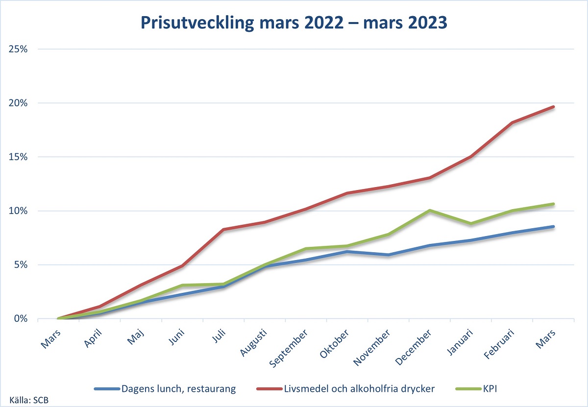 – Priset på livsmedel i butik har procentuellt stigit mer än dubbelt så mycket som en dagens lunch på restaurang det senaste året.