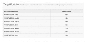 Förvaltarna för USO sade då att de skulle komma att köpa kontrakt med löptider så långt fram som ett år framöver för att ytterligare sprida risk och lägga till likviditet. Sedan igår ser USO: s portfölj ut så här: