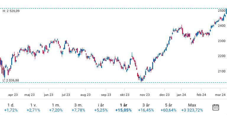 I en milstolpe för den svenska aktiemarknaden har Stockholmsbörsens storbolagsindex OMXS30 brutit igenom 2 500-nivån för första gången i dess historia. Detta historiska ögonblick inträffade när indexet inte bara passerade den psykologiskt viktiga 2 500-gränsen utan också nådde ett nytt all-time-high på 2 526 innan det slutligen stängde tisdagen på omkring 2 522. Denna framgångssaga har varit särskilt anmärkningsvärd mot bakgrund av de starka prestationerna på de amerikanska börserna, som har visat robusthet trots negativa inflationssiffror.