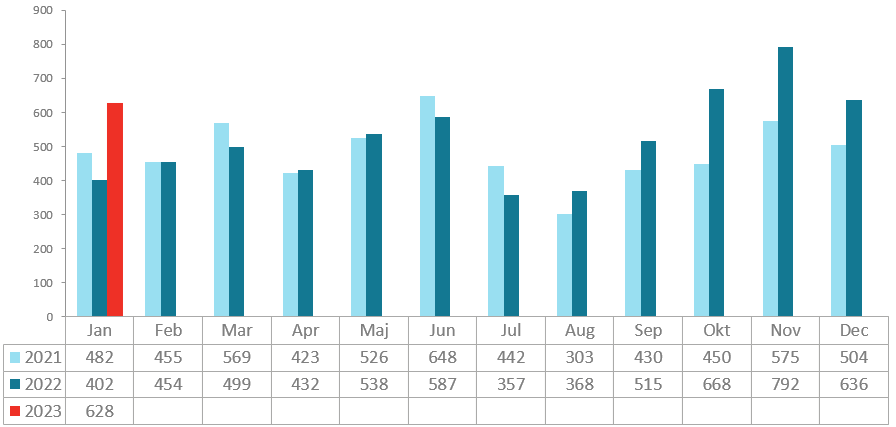 –Vi kan konstatera att vi aldrig haft fler konkurser än det vi ser i januari. Det är stigande konkurstal i samtliga branscher i vår statistik. Men också väldigt tydliga utmaningar för företagen som jobbar mot konsumenter, där slår konkurserna nu igenom med full kraft. Min bedömning är att konkurserna bland svenska företag fortsätter stiga i minst ett halvår, säger Henrik Jacobsson, VD på Creditsafe.