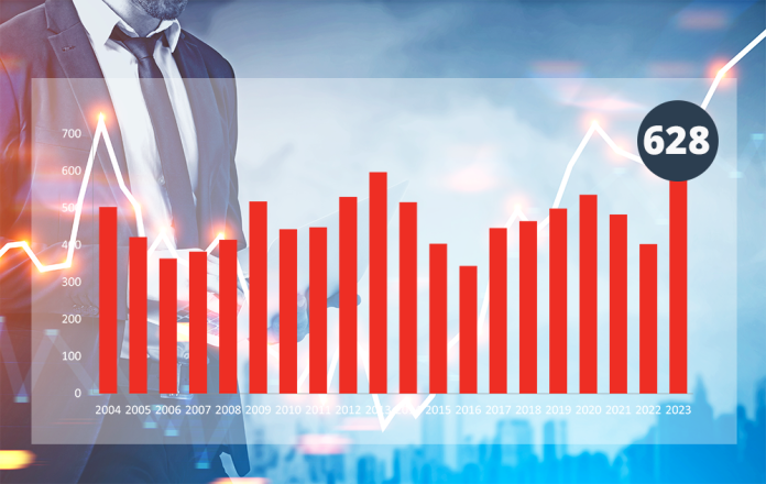 Det nya rekordet för antal konkurser har nåtts då 628 aktiebolag blev försatta i konkurs under första månaden i år. Detta är den högsta siffran någonsin för en januari månad, och är en ökning med 56 procent jämfört med samma månad året innan. Konkurserna fortsätter från den konkursstorm som började under andra halvan av förra året.