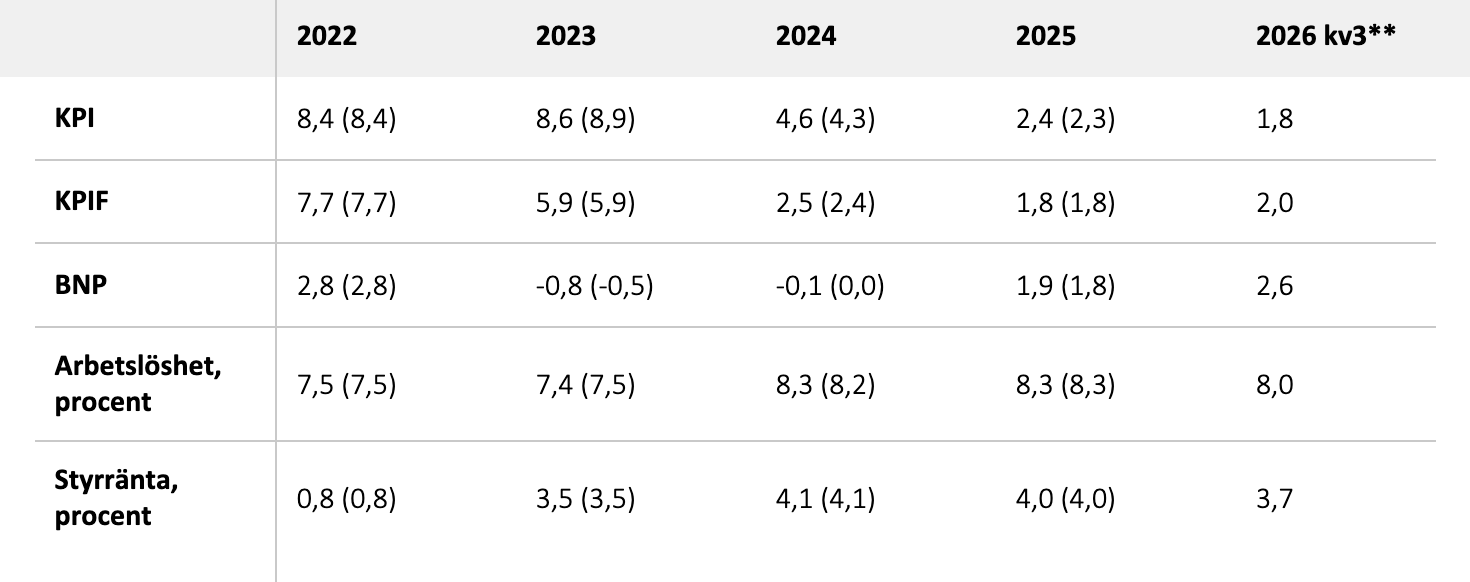 Trots att inflationen har börjat sjunka, är inflationstrycket i svensk ekonomi fortfarande för högt. Detta har delvis orsakats av de snabba räntehöjningarna från centralbanker runt om i världen sedan början av förra året. Dessa åtgärder har syftat till att dämpa inflationen och balansera konjunkturen. Många centralbanker har nu börjat anpassa sin penningpolitik i mer gradvisa steg, men har ändå markerat att räntesänkningar inte är aktuella på kort sikt.