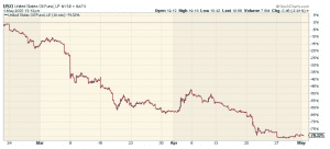 Ovanstående diagram är lite vilseledande eftersom det inte är justerat för den omvända split 1: 8 som nyligen genomfördes, men du kan tydligt se trenden. Robinhood-investerare köpte USO till sina konton när oljepriset dök. De kanske försökte köpa dippen, men de gjorde det verkligen vid fel tidpunkt.