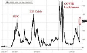 Sammanslagningen bringade marknaden viss lugn, men än råder stor oro kring spridningsriskerna. I fokus har flera amerikanska nischbanker dykt upp i svallvågorna av SVB (Silicon Valley Bank), vilken fått den tveksamma äran att vara först ut i paraden av banker som hamnat i svårigheter. Strålkastarljus riktas nu mot namn som First Foundation, First Republic Bank, Zions Bancorporation, PacWest och KeyCorp. Dessa nischbanker är liksom SVB stora utifrån våra mått mätt, men dock inte systemviktiga. Oavsett är läget allvarligt, inte minst som giganten Deutsche Bank i fredags hamnade i blåsväder angående förtidslösen av en obligation – en liknande anledning som föranledde krisen i SVB. Ingen rök utan eld, men jag fick känslan av att tyskarna åtminstone utgav sig för att ha koll på läget. Oron speglas dock tydligt i bankens CDS, Credit Default Swaps – se nedan.