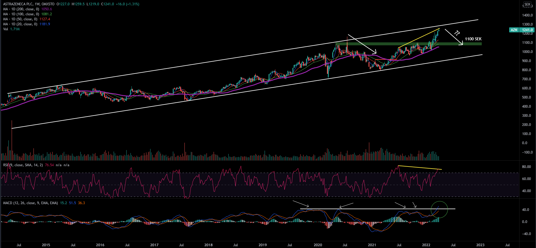 Den här veckan tittar vi närmare på AstraZeneca, SAAB och OXE Marine. Samtliga aktier i detta avsnitt har klarat sig relativt bra under första kvartalet, 2022. Det ska bli intressant och se om de kan hålla tempot uppe under resten av året. Först ut är AstraZeneca där vi zoomar ut en bit och tittar i veckografen. Sedan tittar vi på dagsgrafen för både SAAB och OXE Marine.