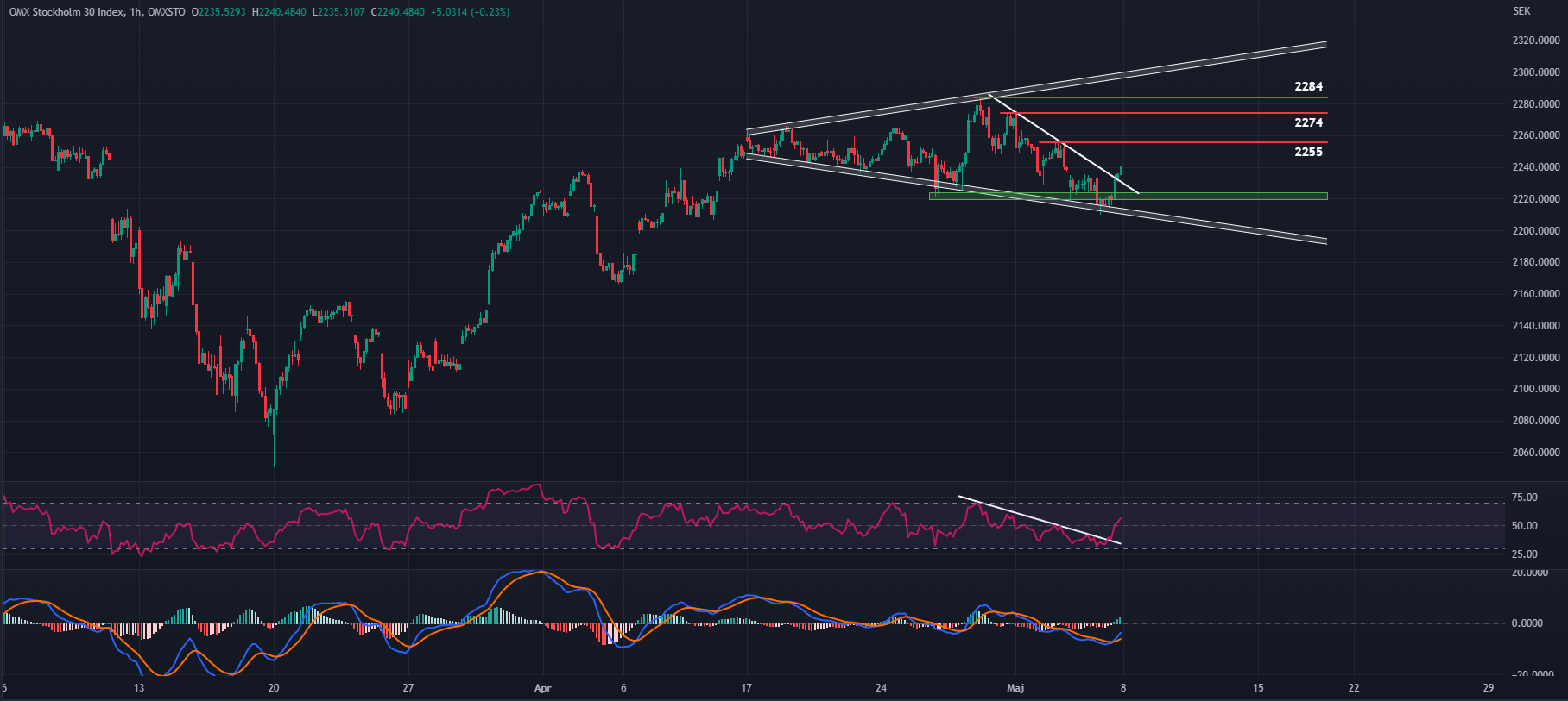 Sammanfattningsvis talar den tekniska bilden för en stark inledning under denna vecka, men det är ändå värt att notera viktiga motståndsområden ovanför fredagens stängningskurs. Exempelvis 2255, 2274 och 2284.