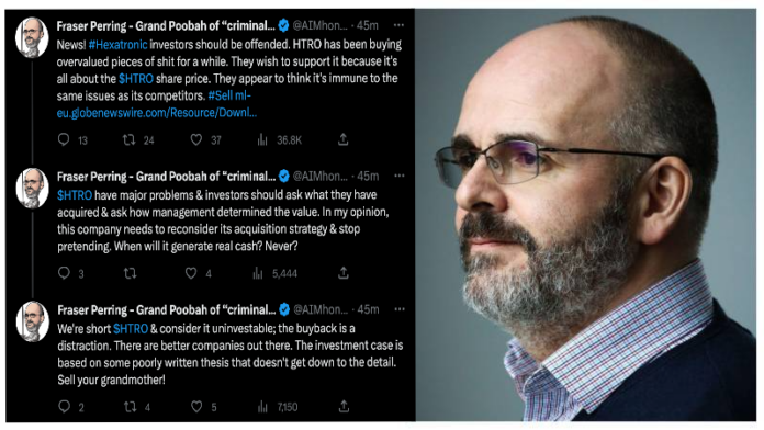 Tidigare under förmiddagen på onsdagen annonserade Hexatronic ett återköpsprogram av 1,2 miljoner aktier. Strax därefter publicerade Perring ett flertal twitterinlägg som kritiserade bolaget på flera sätt.